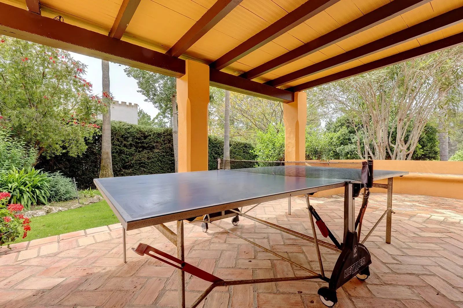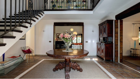 The house is located in a beautiful, quiet, and lush villa area with large properties, an 8-minute drive from Puerto Banus, 20 minutes to Marbella city center, and 45 minutes to Malaga airport.